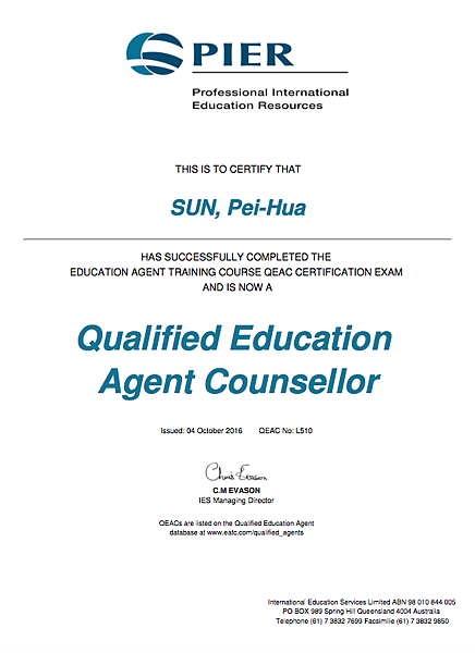 PIER是專業的國際教育資源,由PIER與澳洲國際教育部(AEI)以及澳洲移民局(DIAC)聯合推出的課程。完成了PIER課程即可獲得PIER證書,證明已完整了解國際學生課程的規定,以及簽證規定。 Aone 國際留遊學 發表在 痞客邦 留言(0) 人氣(192)